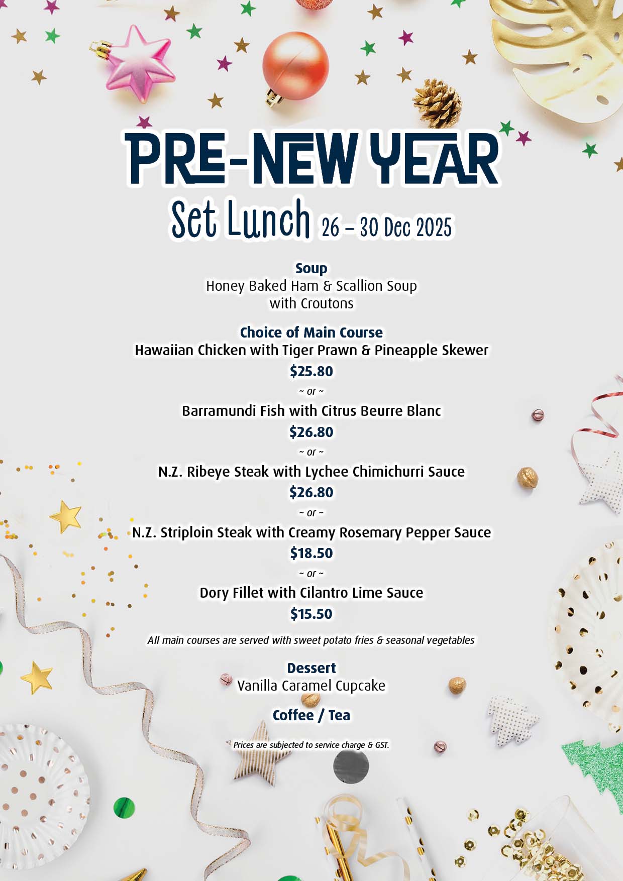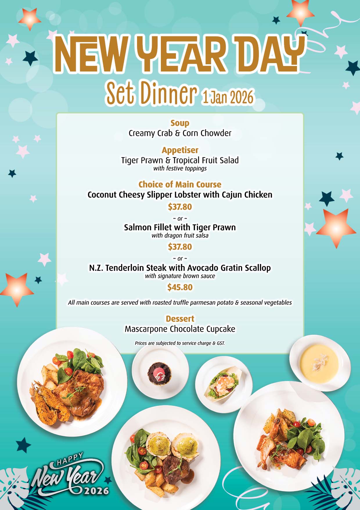 Anchorpoint, Ang Mo Kio, Bras Basah Complex, City Square, Compass One, JEM, Jewel Changi Airport, NEX @ Serangoon, OrangeTee Building, Parkway Parade, Promotions, Safra Jurong Club, Safra PunggolNew Year Menus26 Dec 2025 to 1 Jan 2026 Posted on 3rd December 20253rd December 2025 by Rahimah 03 Dec Celebrate New Year’s with sumptuous Set Menus!Available from 26 Dec 2025 to 1 Jan 2026 Pre - New Year's Set Lunch New Year's Eve Set Lunch New Year's Eve Set Dinner New Year's Day Set Lunch New Year's Day Set Dinner Make a Reservation! Rahimah Festive Feasts & Bundle DealsNow till 30 Dec Christmas Menus15 to 25 Dec 2025